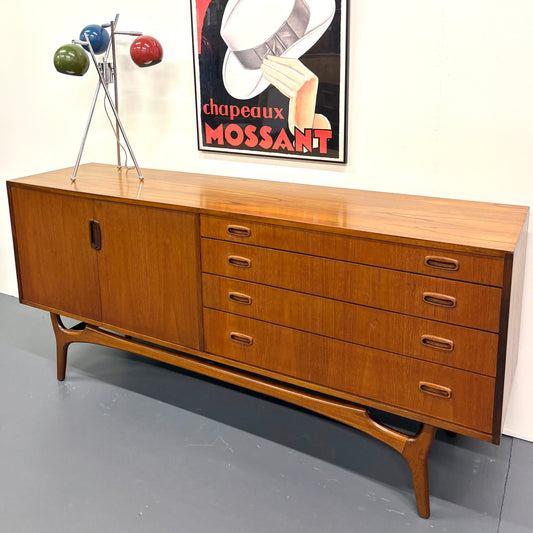 Mid Century Teak Credenza/Sideboard with Sculpted Stretcher Base