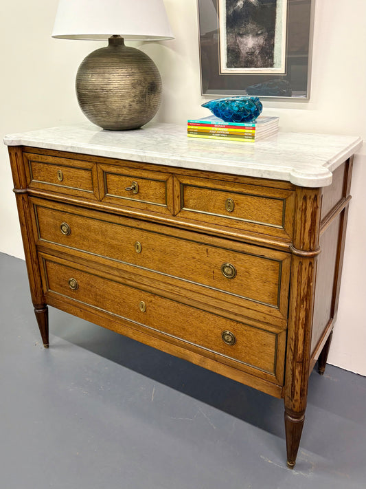 ANTIQUE LOUIS XVI STYLE MARBLE TOP CHEST OF DRAWERS, FRANCE
