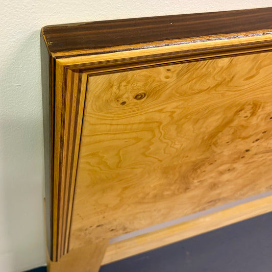 Mid Century Olive Burl Wood King Headboard by Heredon “Scene Two” Design