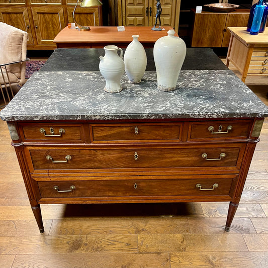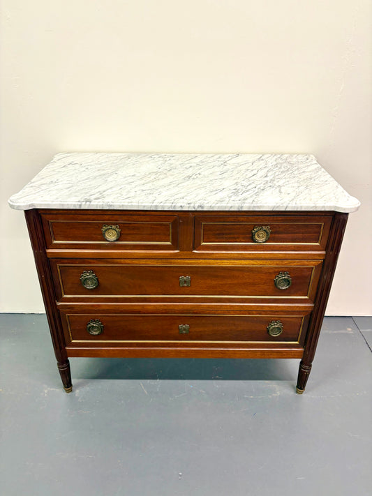 Antique French Louis XVI Marble Top Four Drawer Chest