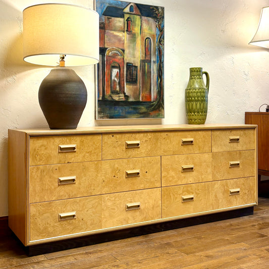 Mid Century Olive Burl Wood Dresser by Heredon “Scene Two” Design